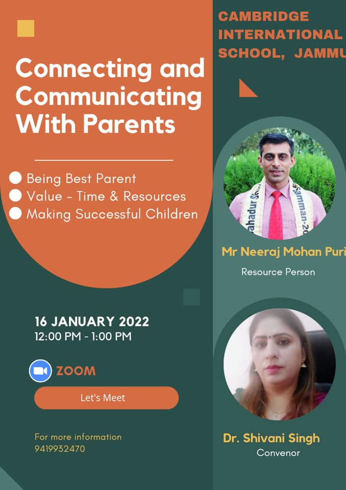 Academics Archives - Cambridge International School https://www.cambridgejammu.in/category/academics/ Best CBSE School in Jammu Sat, 22 Jan 2022 17:01:56 +0000 en-US hourly 1 https://wordpress.org/?v=6.9.4 https://www.cambridgejammu.in/wp-content/uploads/2022/01/cropped-Logo-32x32.png Academics Archives - Cambridge International School https://www.cambridgejammu.in/category/academics/ 32 32 Expert Session on Healthy Parenting by Mr. Neeraj Mohan https://www.cambridgejammu.in/expert-session-on-healthy-parenting-by-mr-neeraj-mohan/ https://www.cambridgejammu.in/expert-session-on-healthy-parenting-by-mr-neeraj-mohan/#respond Sat, 22 Jan 2022 16:56:50 +0000 https://www.cambridgejammu.in/?p=860